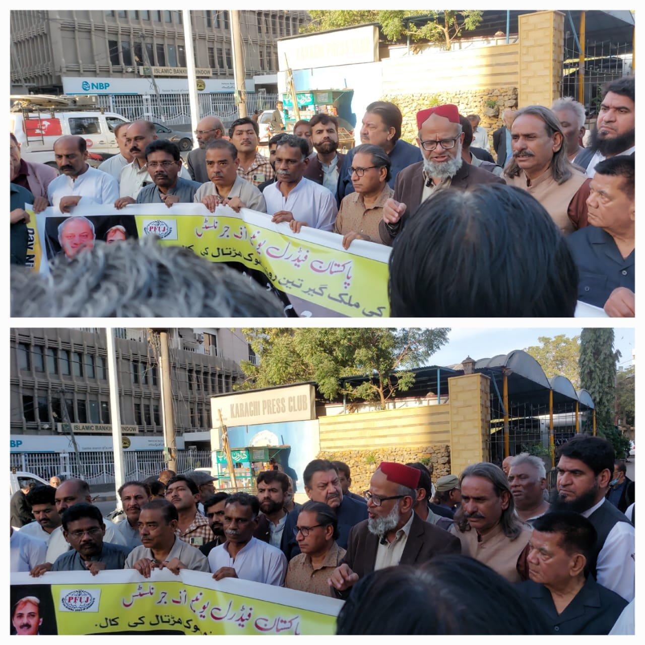 کراچی پریس کلب میں KUJ کے صدر سید طاہر کی اپیل پر تین روزہ بھوک ہڑتال کی۔