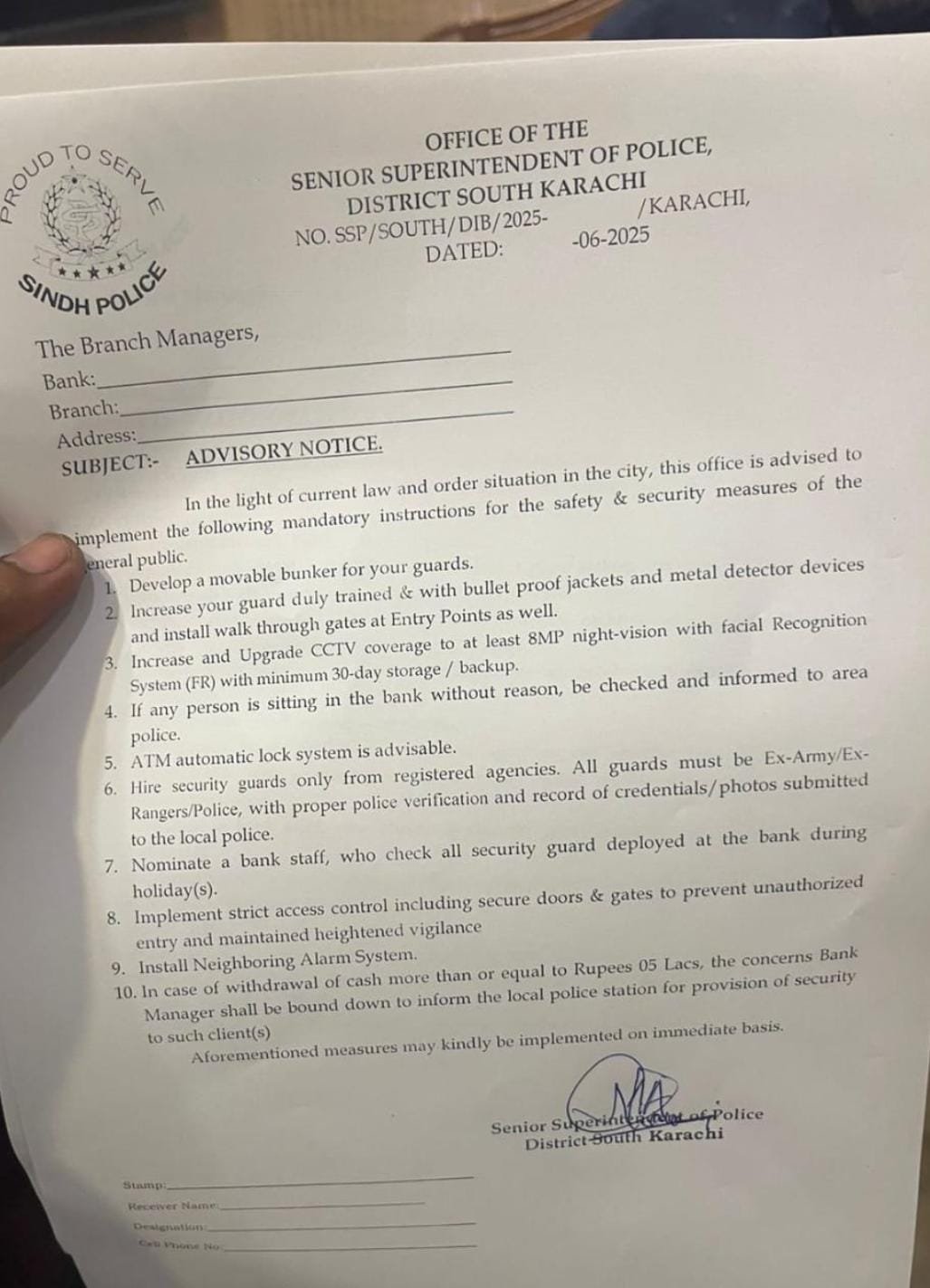 اب پانچ لاکھ یا اس سے زائد رقم نکلوانے والوں کو پولیس سیکورٹی لینا لازمی ہوگی۔ اس حوالے سے ساوتھ پولیس کی جانب سے ایڈوائزری بھی جاری کی گئی ہے۔