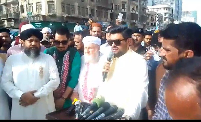 رحمت للعالمین حضرت محمد مصطفیٰ ﷺ کے پندرہ سو ویں جشن ولادت باسعادت کے سلسلے میں نمائش چورنگی سے نیو میمن مسجد تک عظیم الشان جلوس نکالا گیا۔
